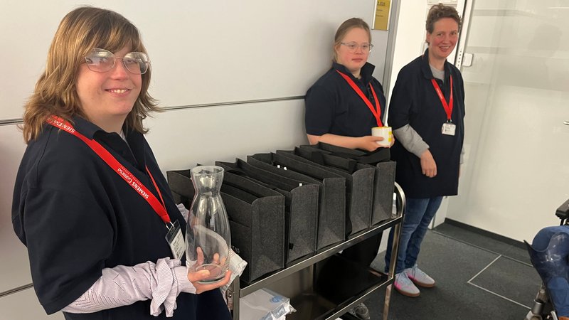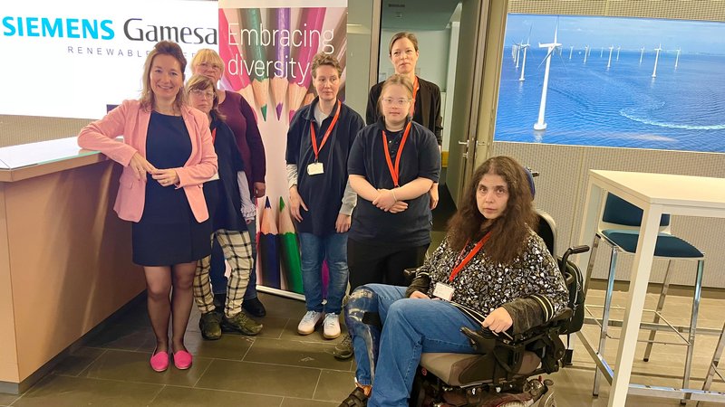 Und das Feedback der Firma? Durchweg positiv. „Wir empfinden es als große Bereicherung, die Beschäftigten bei uns zu haben“, berichtet Sandra Bertl, Vertragsmanagerin bei Siemens Gamesa. „Und wir bekommen die Rückmeldung unserer Mitarbeitenden, dass sie es toll finden, dass wir hier eine Haltung repräsentieren.“ Anna Weyrauch vom Rauhen Haus betont die zentrale Bedeutung von Sichtbarkeit. „Menschen mit Behinderung verschwinden so nicht in irgendwelchen Nischen oder bleiben unsichtbar als Aushilfen in Großküchen, sondern sind hier mitten in der Firma mit dabei.“ Es sei deutlich eine Annäherung zu spüren. „Als neulich ein Siemens-Mitarbeiter seinen Geburtstag feierte, lud er unser kleines Team prompt mit ein. Das ist doch ein klares Zeichen!“