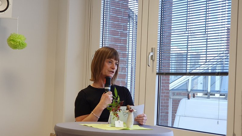 In ihrer Rede bedankt sich Teamleiterin Maren Röse auch bei ihrem Team und den Klient*innen.