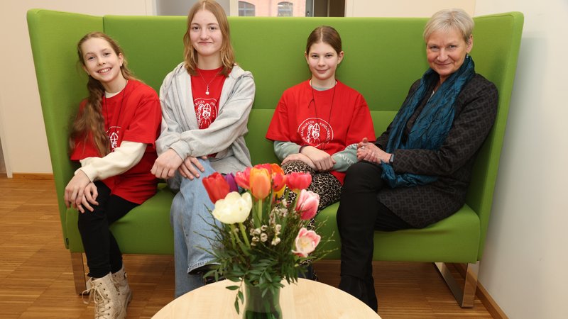 Vier Bischöfinnen an einem Ort, das hat Seltenheitswert, befand Kirsten Fehrs bei der Begrüßung ihrer jungen Amtskolleginnen in ihrer Bischofskanzlei in der Hafencity. Herzlich lud sie ihre Schwestern zu einem Gespräch ein und ließ sich vom diesjährigen Thema der Kinderbischöfinnen berichten: „Für eine Anerkennung unserer Vielfalt: Wir sind nicht gleich, aber alle gleich wertvoll! Wir wollen Beteiligung und Gleichberechtigung für alle Kinder.“ Ein Thema, das auch Kirsten Fehrs sehr am Herzen liegt. Lebhaft tauschte sie sich mit Amilia, Paula und Anastasia über Inklusion aus und berichtete von ihren Erfahrungen beim Dialog der Stille, den auch die Schülerinnen im Rahmen ihrer Amtszeit noch besuchen werden.